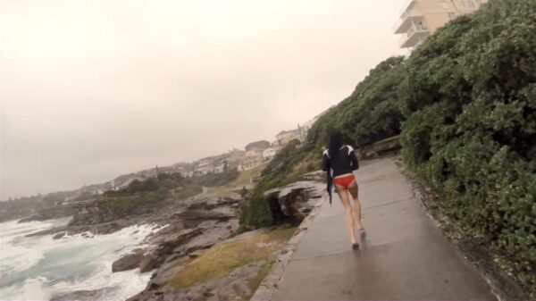 Bikinichick wordt op het strand bijna geëlektrocuteerd door blikseminslag
