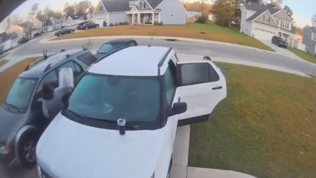 Gast slingert 'hondsdolle' lynx over het gazon die zijn vrouw aanvalt