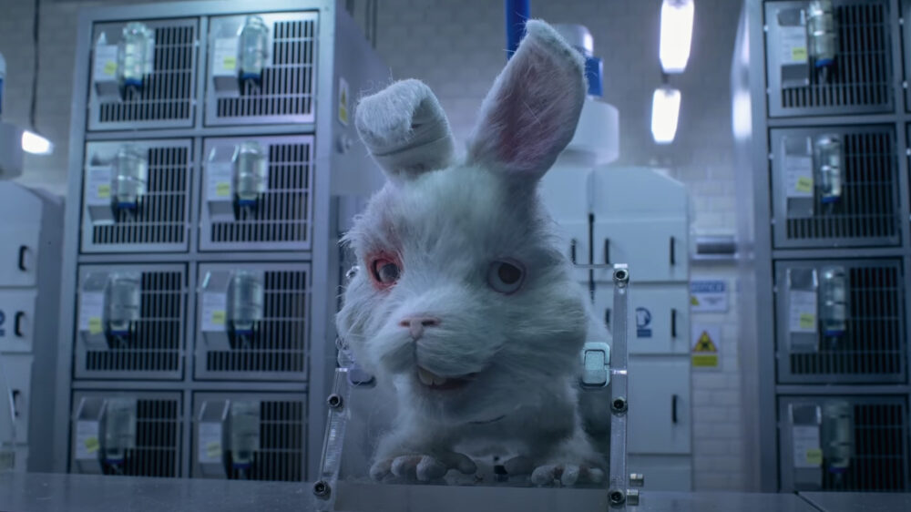 Dit is in eerste instantie een geinige stop-motionvideo over een konijn dat voor een documentaire wordt gevolgd in zijn dagelijkse werkzaamheden. Schijn bedriegt echter, want het pluizige beestje werkt als proefkonijn. Heeft 'ie overigens alle begrip voor, want als er ook maar 1 mens is dat denkt dat 'ie op deze manier een veiligere lippenstift heeft dan offert hij zich graag op.