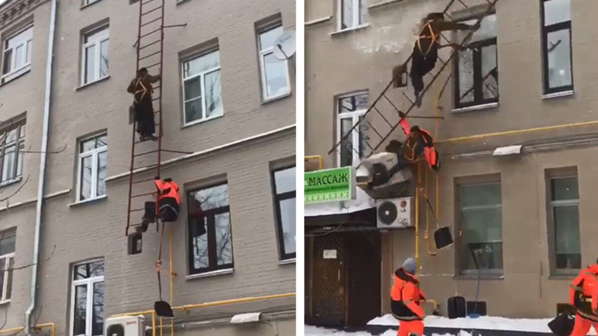 Oude doos: niet met twee mensen tegelijk op de ladder A.U.B. Fails