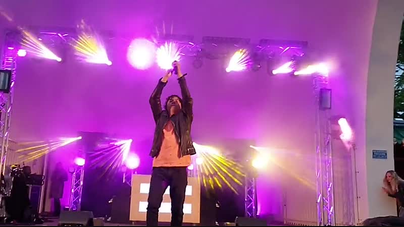Beveiliger heeft geen haast als iemand het podium op rent tijdens een optreden van Vinzzent in Baarn Fun