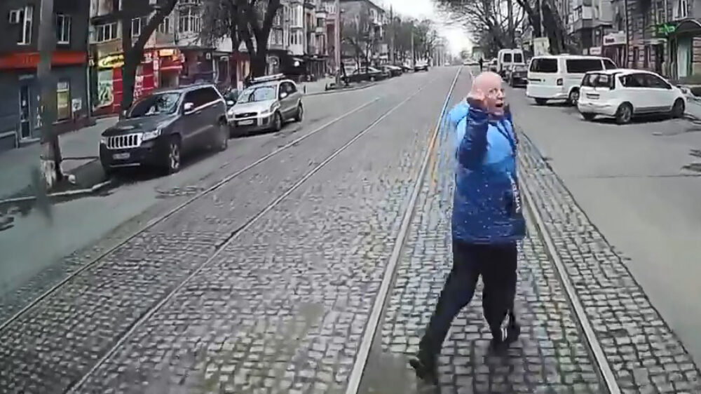 Sportieve Oekraïner leert ongeduldige trambestuurder een lesje
