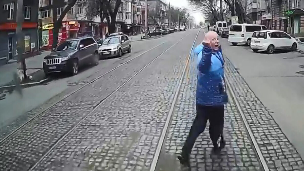 Sportieve Oekraïner leert ongeduldige trambestuurder een lesje