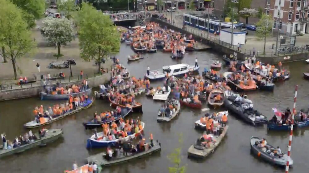 Timelapse van drukte op de gracht in Amsterdam tijdens Koningsdag