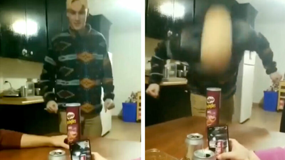 Wedden dat ik deze bus Pringles met mijn hoofd kan crushen!? Fails