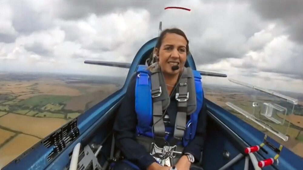 Ondanks dat ze kijkt alsof ze moet poepen hebben we hier toch echt te maken met een ervaren piloot. Het is alleen de co-piloot die de kist bestuurt en G-krachten zijn nu eenmaal veel moeilijker te verdragen als iemand anders vliegt.
