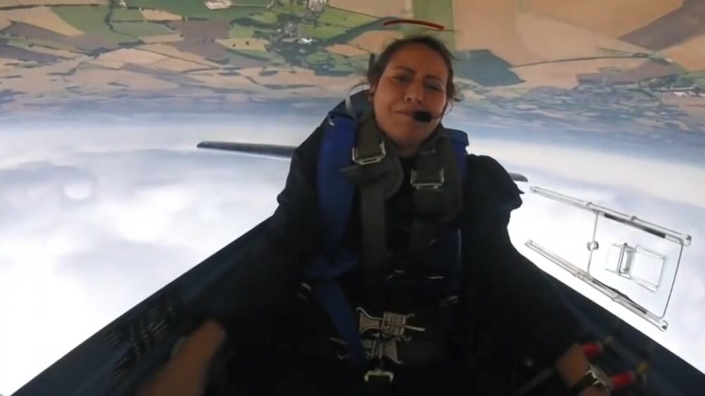 Ondanks dat ze kijkt alsof ze moet poepen hebben we hier toch echt te maken met een ervaren piloot. Het is alleen de co-piloot die de kist bestuurt en G-krachten zijn nu eenmaal veel moeilijker te verdragen als iemand anders vliegt.