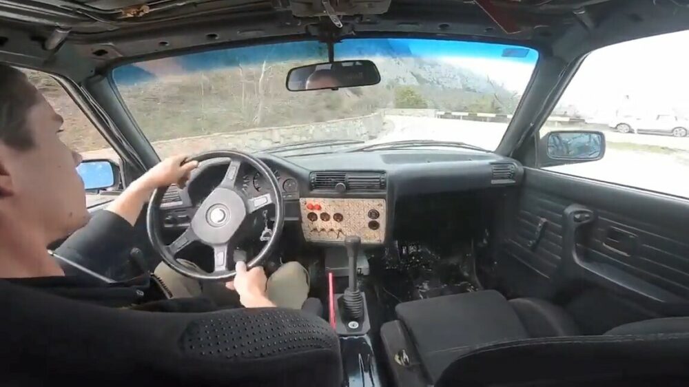 Racebink drift er lekker op los in zijn behoorlijk gare BMW E30