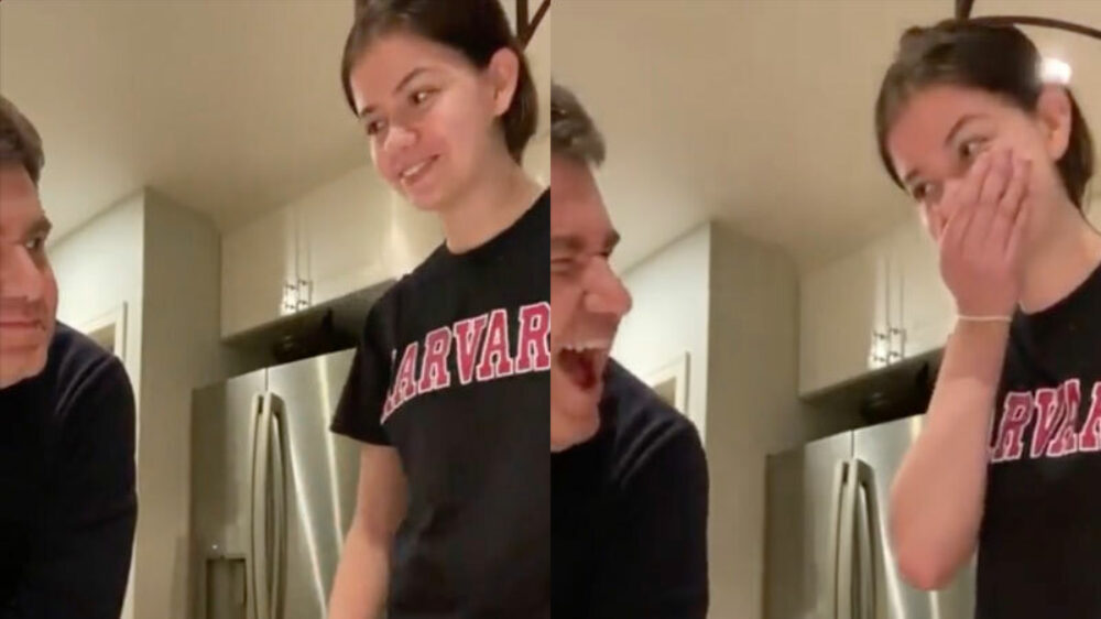 Dit vunzige grapje van dochterlief zag papa niet helemaal aankomen