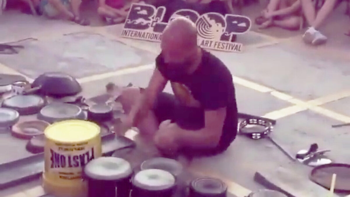 Om techno te maken heb je een hele bak (virtuele) synthesizers en drumcomputers nodig. Toch? Fout, want deze drummer laat zien dat je met slechts een paar emmers, pannen en wat oud ijzer een heel eind komt.