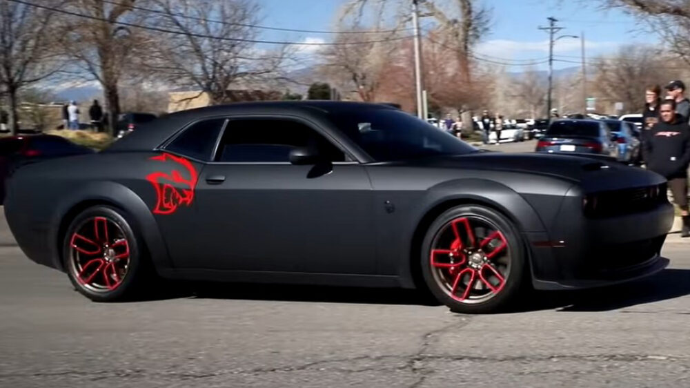 Uitslover in Dodge Challenger Hellcat beukt weggebruiker op zijn kantje