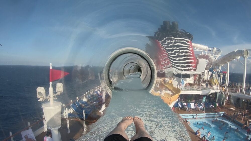Op de Disney Cruise vind je deze hele vette waterglijbaan met geweldig uitzicht