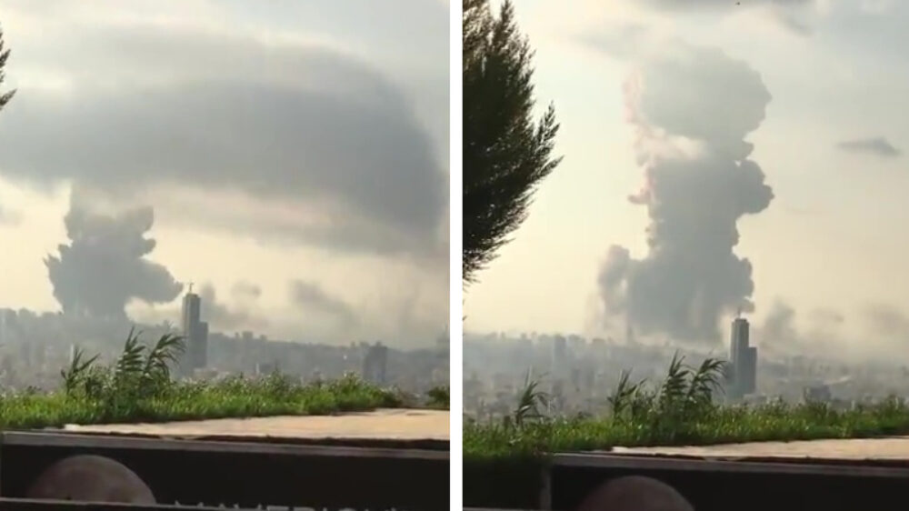 Bizarre nieuwe beelden van de mega-explosie in Beiroet: schokgolf knalt wolken weg