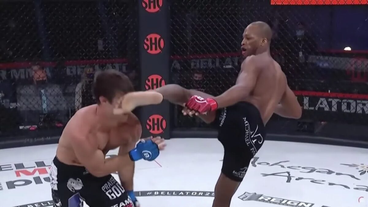 Michael ‘Venom’ Page behaalde dankzij deze goed geplaatste trap het record van de meeste KO's bij Bellator. Shamone!