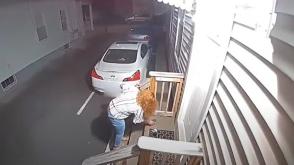 Beschonken Barbara struikelt en geeft d'r voordeur een kopstoot