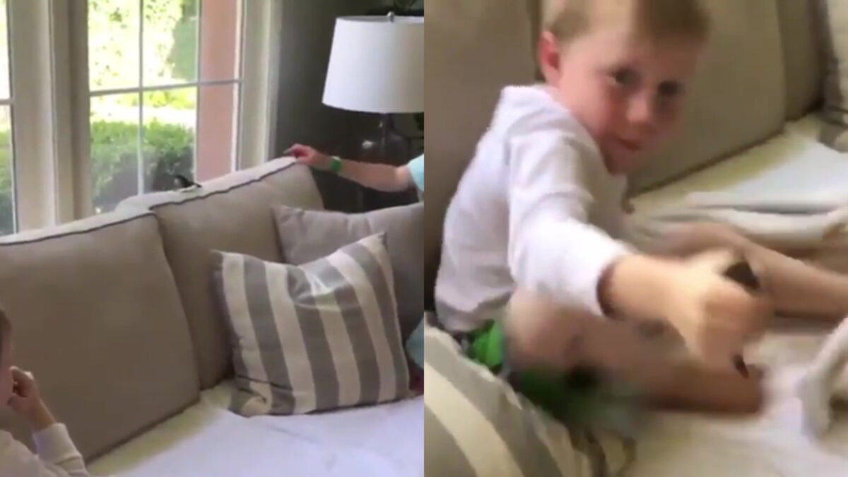 Koter laat zijn ouders zien hoe je een vogeltje vangt Fun