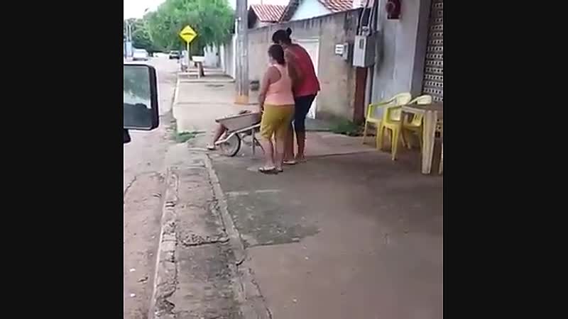 Braziliaanse vrouw brengt haar bezopen vent naar huis met de kruiwagen Fun