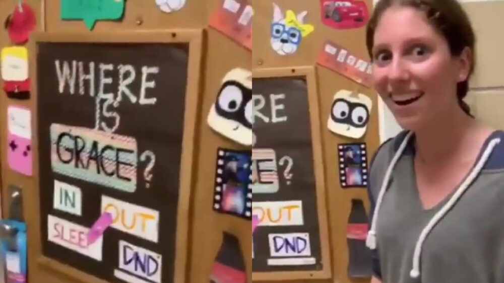 Waar Grace is? Nou achter de deur zo te horen... Random