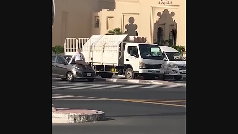 Inwoner van Dubai weigert tijdens roadrage van motorkap af te gaan