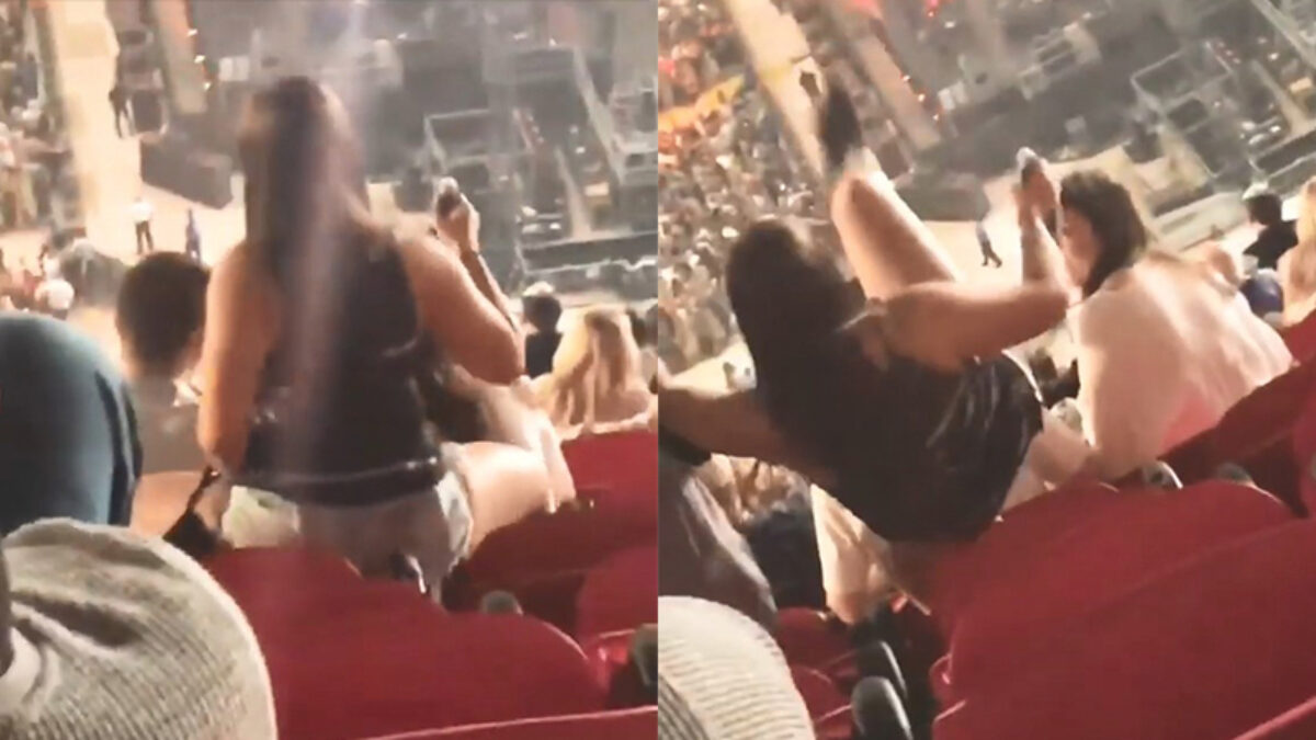 Dronken aandachtstrekster probeert de show te stelen tijdens een concert
