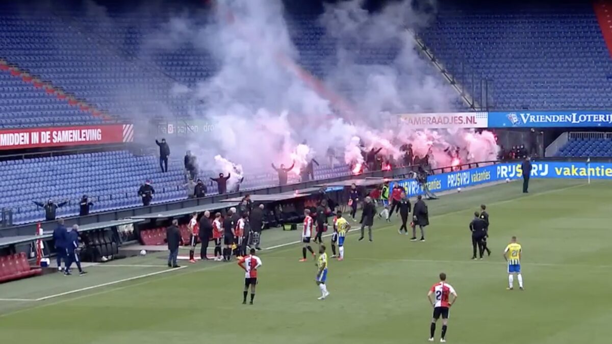 Fans van @Feyenoord breken het stadion in en steken vuurwerk af! De wedstrijd is kort onderbroken, maar ondertussen hervat. pic.twitter.com/b0nb1zwvpE