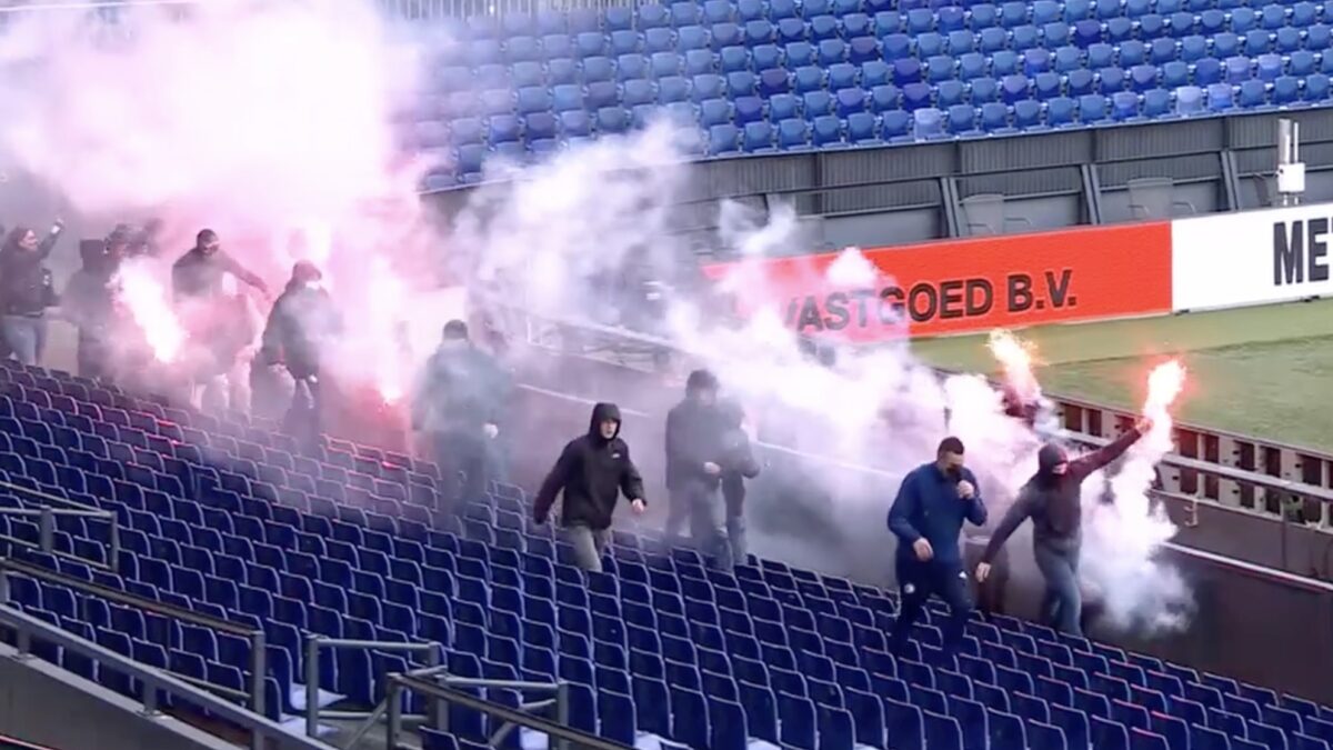 Fans van @Feyenoord breken het stadion in en steken vuurwerk af! De wedstrijd is kort onderbroken, maar ondertussen hervat. pic.twitter.com/b0nb1zwvpE