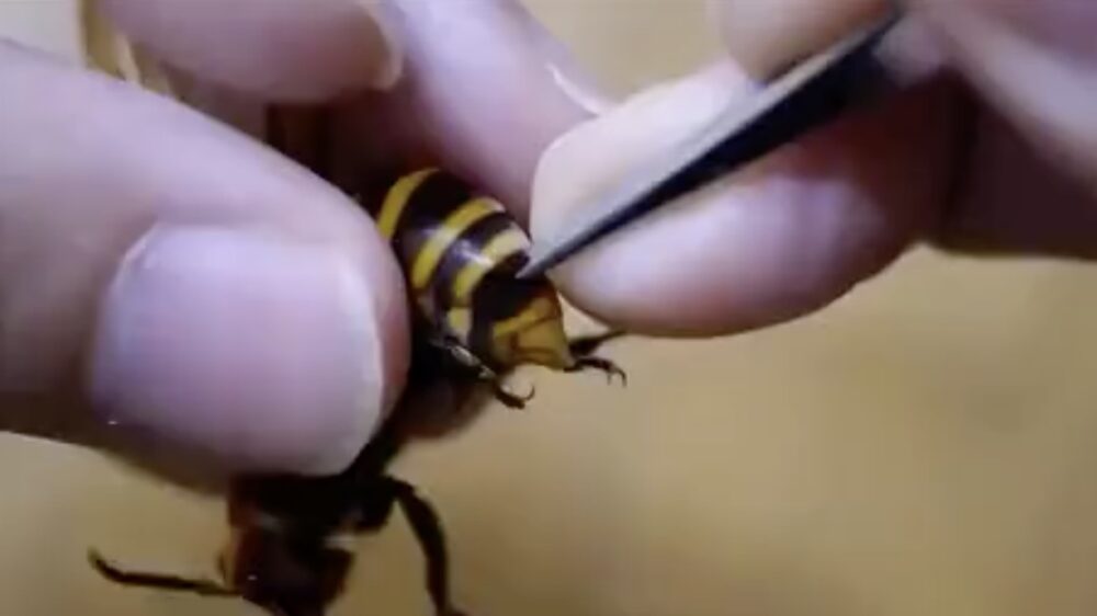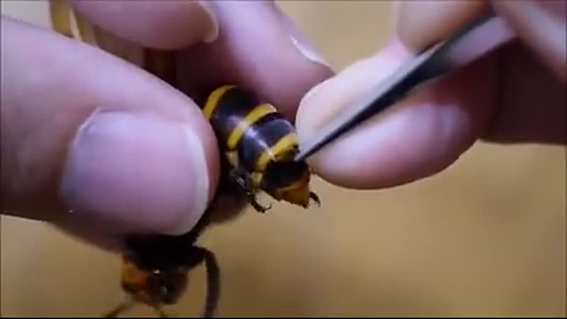 Wel eens een wesp gezien waar een parasiet wordt uitgetrokken?