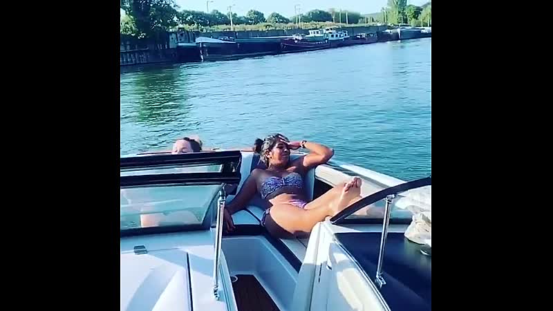 Zonnende dames op speedboot worden op lading water getrakteerd Fun