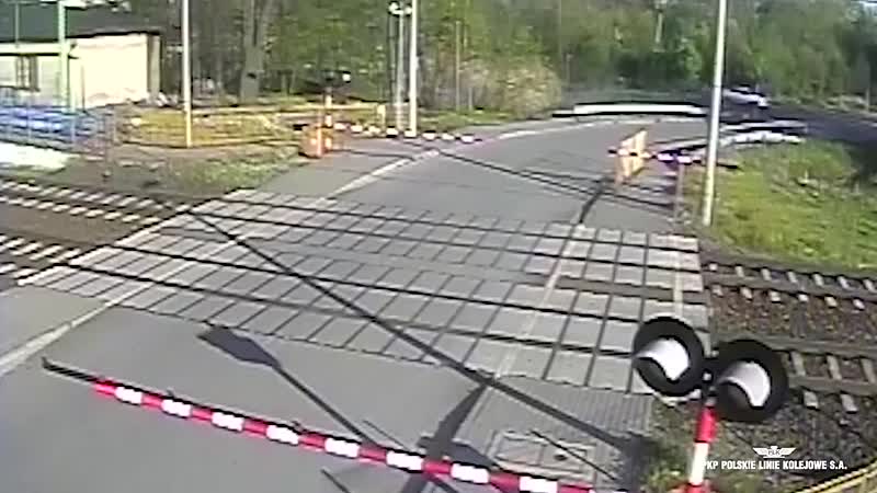 Op één of andere manier lijkt het in #Polen een trend te zijn om bij een spoorwegovergang alle rode stoplichten en slagbomen te negeren om toch nog even VLAK voor een trein over te steken. Deze haastige automobilist raakte gewond maar kan het (gelukkig) wel navertellen.