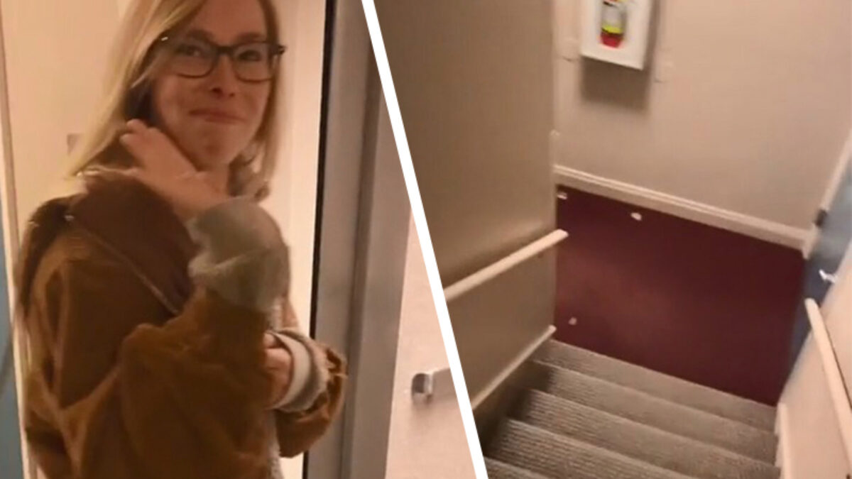 We hebben deze gouwe ouwe liftprank allemaal wel eens bij iemand uitgehaald, alleen was de uitkomst waarschijnlijk minder verrassend. BOE!