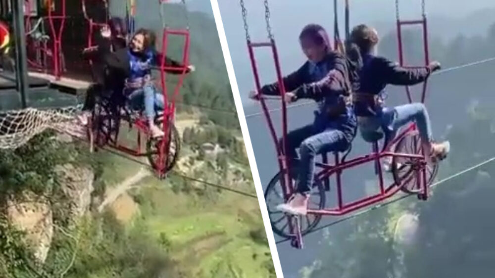 Bizarre fietsattractie alleen geschikt voor mensen zonder hoogtevrees