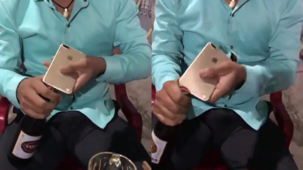 Oké, het ziet eruit als Azië dus de kans is aanwezig dat de telefoon in kwestie een yPhone 76.2A is, maar toch is deze video een goede reden om de volgende keer gewoon de flessenopener te gebruiken.