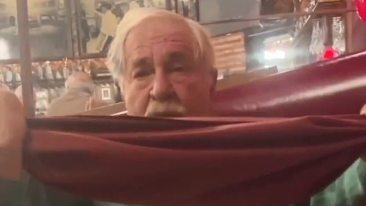 Opa laat een opmerkelijk goocheltrucje zien in een restaurant