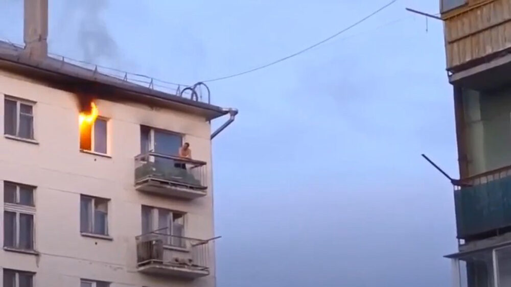 Het meest Russisch filmpje van vandaag komt uit Krasnoturyinsk waar een flatbewoner rustig toekijkt hoe zijn appartement in brand staat. Zero fucks given.