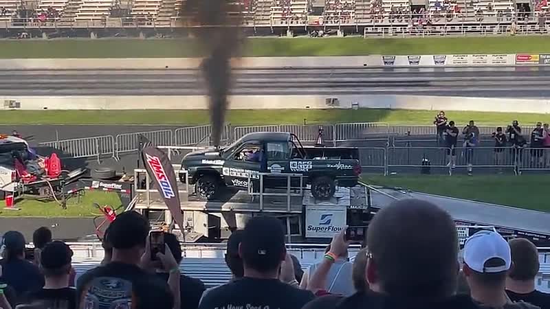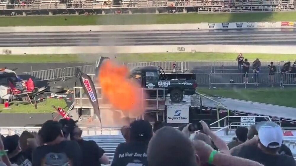 Publiek heeft behoorlijk veel geluk als de motor van een pickup-truck ontploft Fails