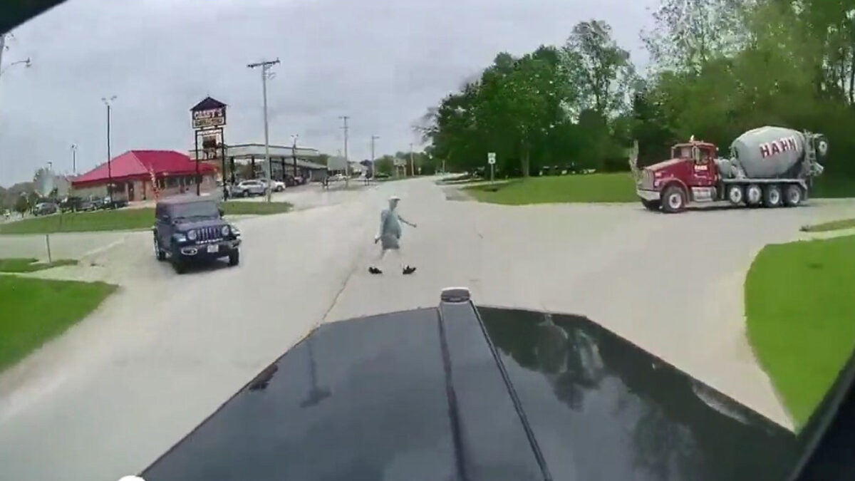 Zero fucks given als deze bejaarde op weg naar de buurtbingo oversteekt. Pompiedompiedom.