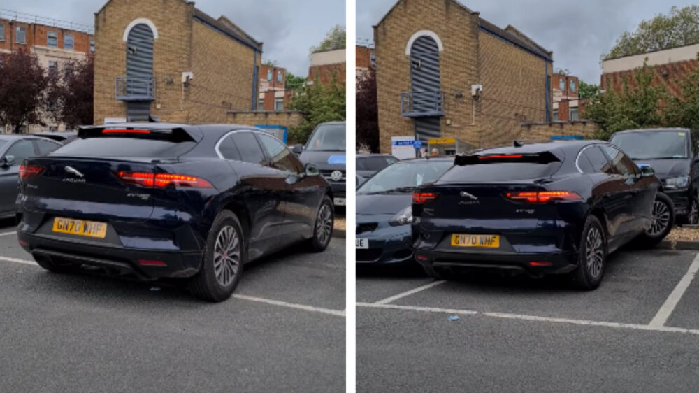 Ook in een dikke Jaguar valt parkeren voor sommigen nog niet mee