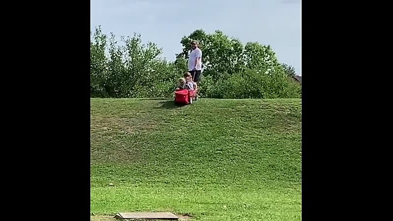 Gezellig met papa naar het park om van de heuvel te rijden!