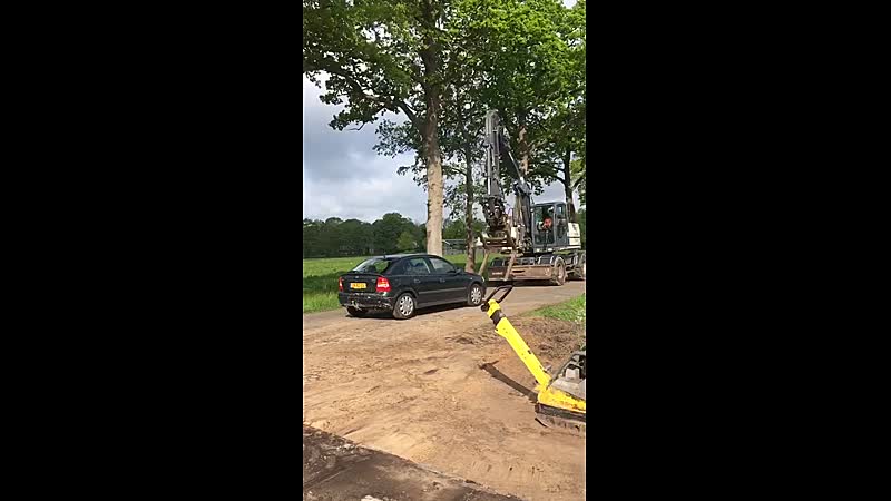 Note to self: nooit toeteren als je oog in oog met een graafmachine staat. Hey, dit is gewoon echt gebeurd jonge. Heus niet in scène gezet!!