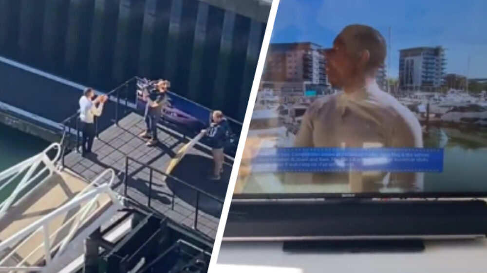 Even een complete cameraploeg trollen met een enorme nies Fun