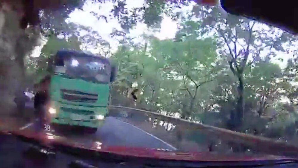 Als je op smalle bergweggetjes rijdt is het zaak om extreem goed op te letten of er in blinde bochten geen tegenligger aankomt. Deze #vrachtwagenchauffeur jakkert gewoon lekker door, of zouden zijn remmen het hebben begeven?