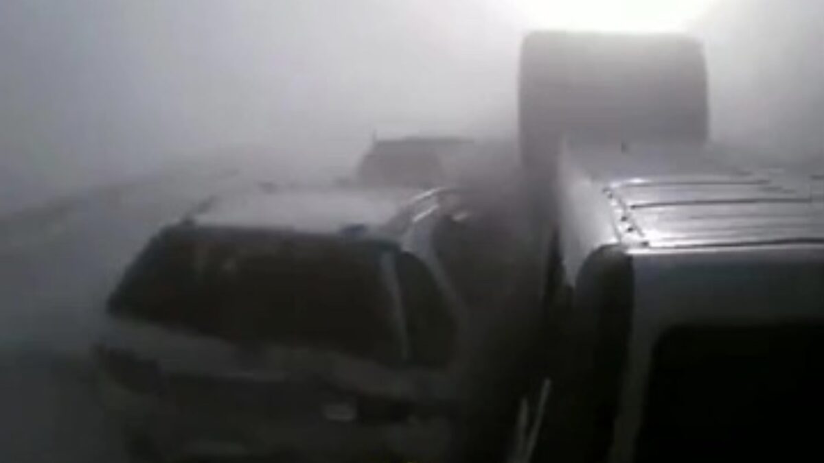 Het klinkt logisch, maar deze video legt je nog even haarfijn uit waarom je beter effe kunt remmen als het extreem mistig is.