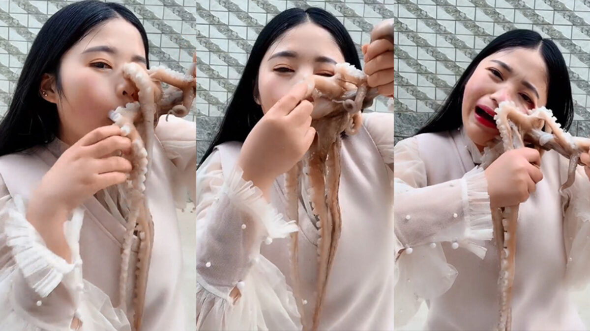 Octopus is klaar met gemiep van Chinees grietje en snoert haar de mond Bizar
