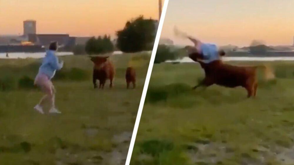 Vrouw in Nijmegen maakt onvrijwillig ritje op hoorns van Schotse hooglander