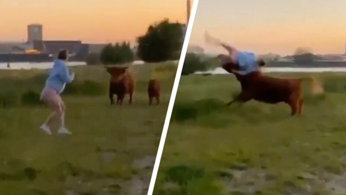Vrouw in Nijmegen maakt onvrijwillig ritje op hoorns van Schotse hooglander