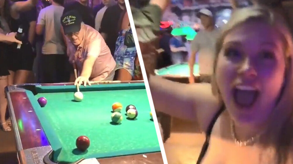 Opa wordt pool-legende in volle kroeg met luidruchtige Amerikanen