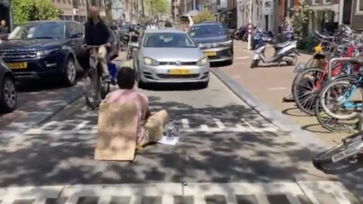 Automobilist helemaal klaar met klimaatactivist die weg in Amsterdam blokkeert
