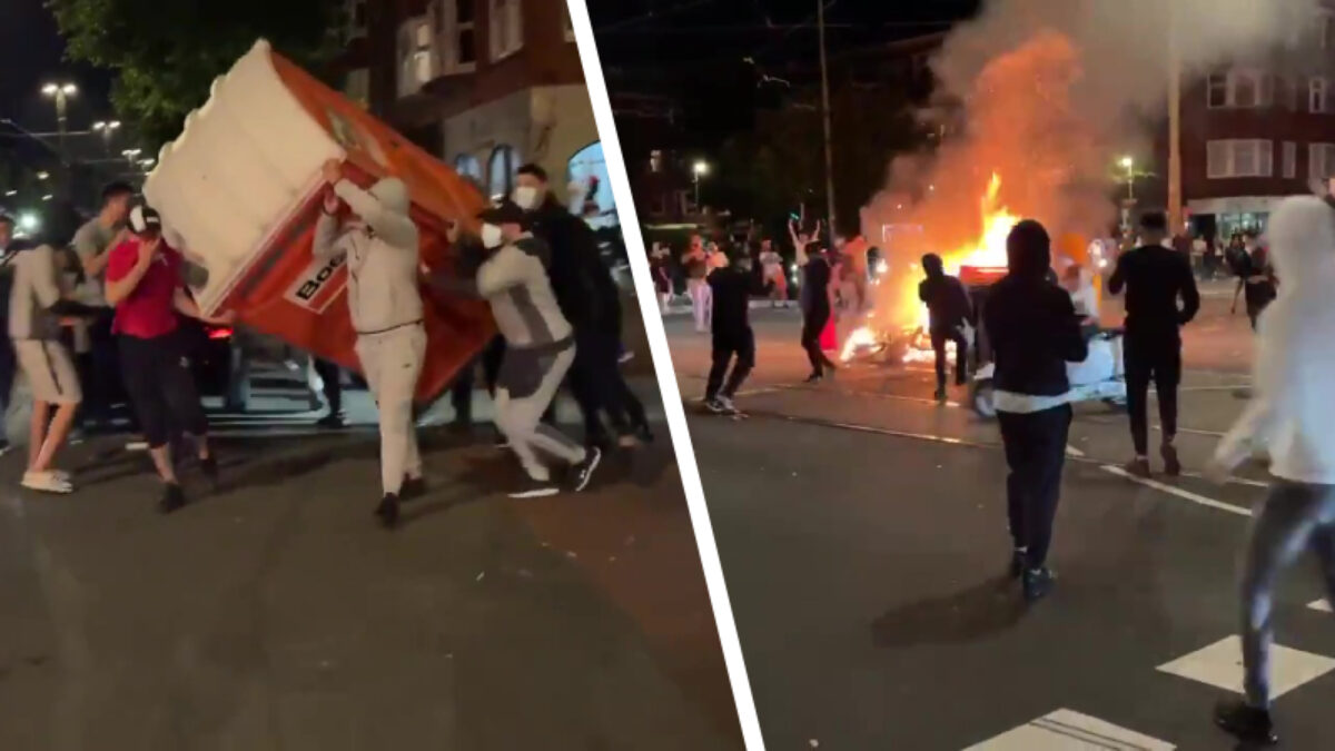 Dixi's, fietsen en terrasstoelen in de fik tijdens "overwinningsfeestje" in Den Haag