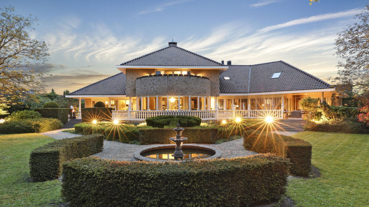 Om die laatste reden zette hij deze woning in 2011 al te koop voor 2,5 miljoen. No bueno, dus probeerde hij het in 2018 voor 2,75 miljoen. Nog steeds geen succes, dus probeert 'ie het nu voor 'slechts' €2.250.000,-. Schijntje! Eerst maar eens zien wat je daarvoor krijgt, te beginnen met de buitenkant.