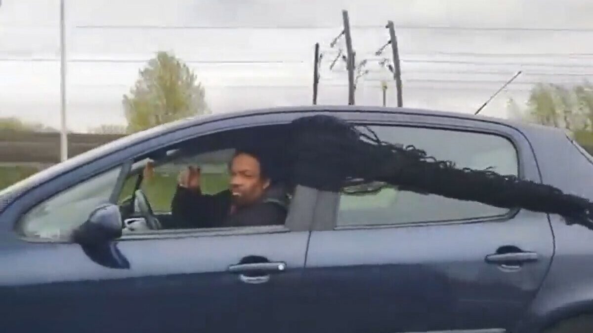 Rasta heeft een slimme manier gevonden om zijn dreadlocks te drogen Verkeer